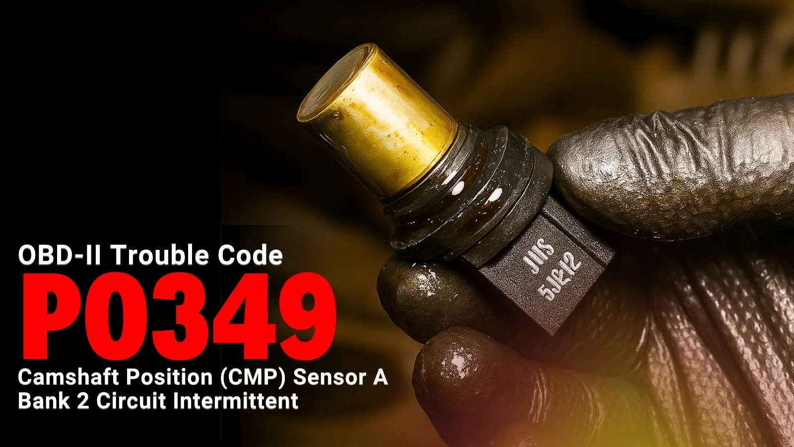 The P0349 code indicates that the Engine Control Module (ECM) has detected an intermittent loss of signal from the camshaft position sensor (Bank 2 – intake side).
