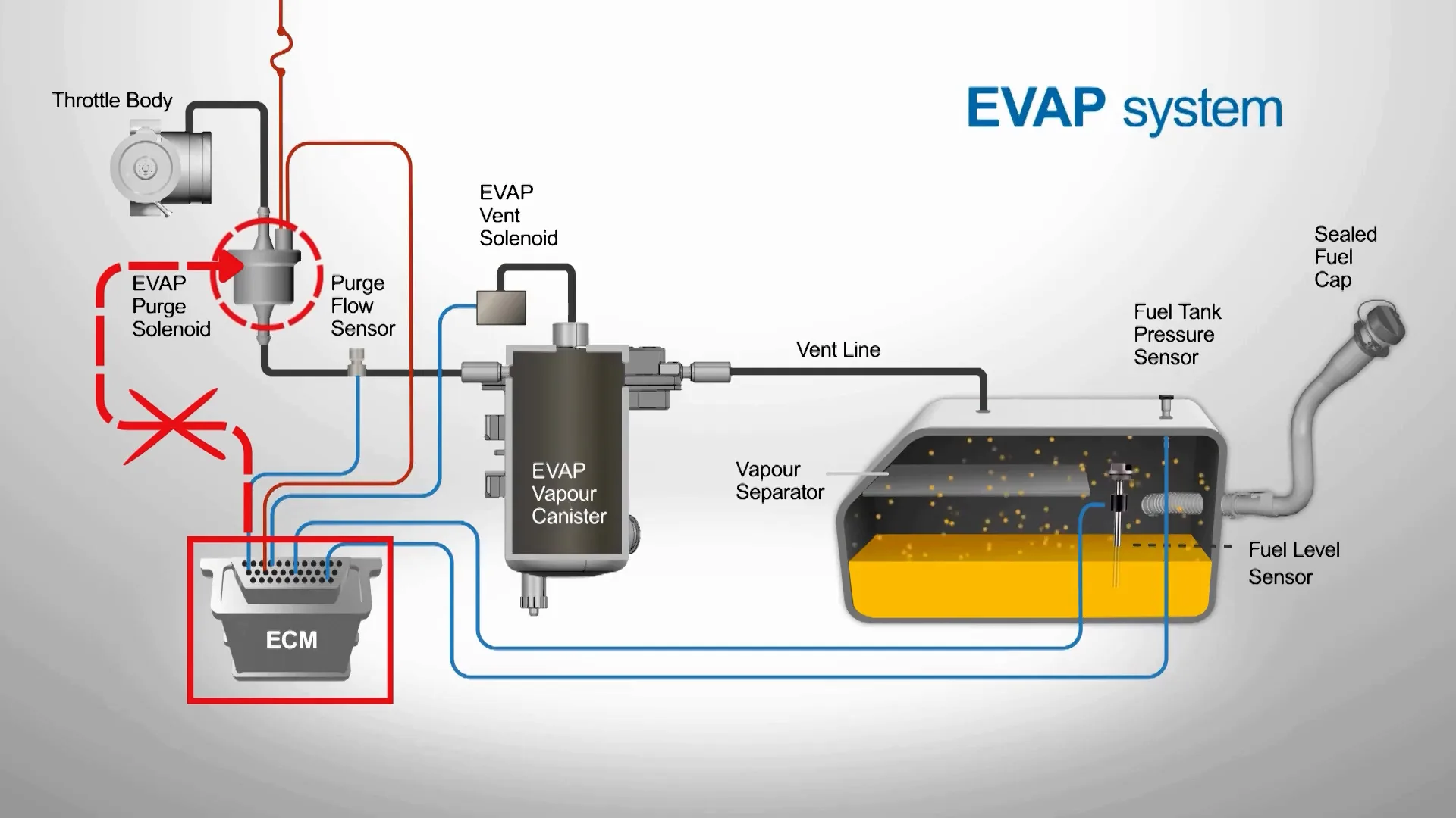 Basically, it’s a collection of components that create a sealed environment, capturing, storing, and eventually purging volatile fuel vapors from the fuel system.